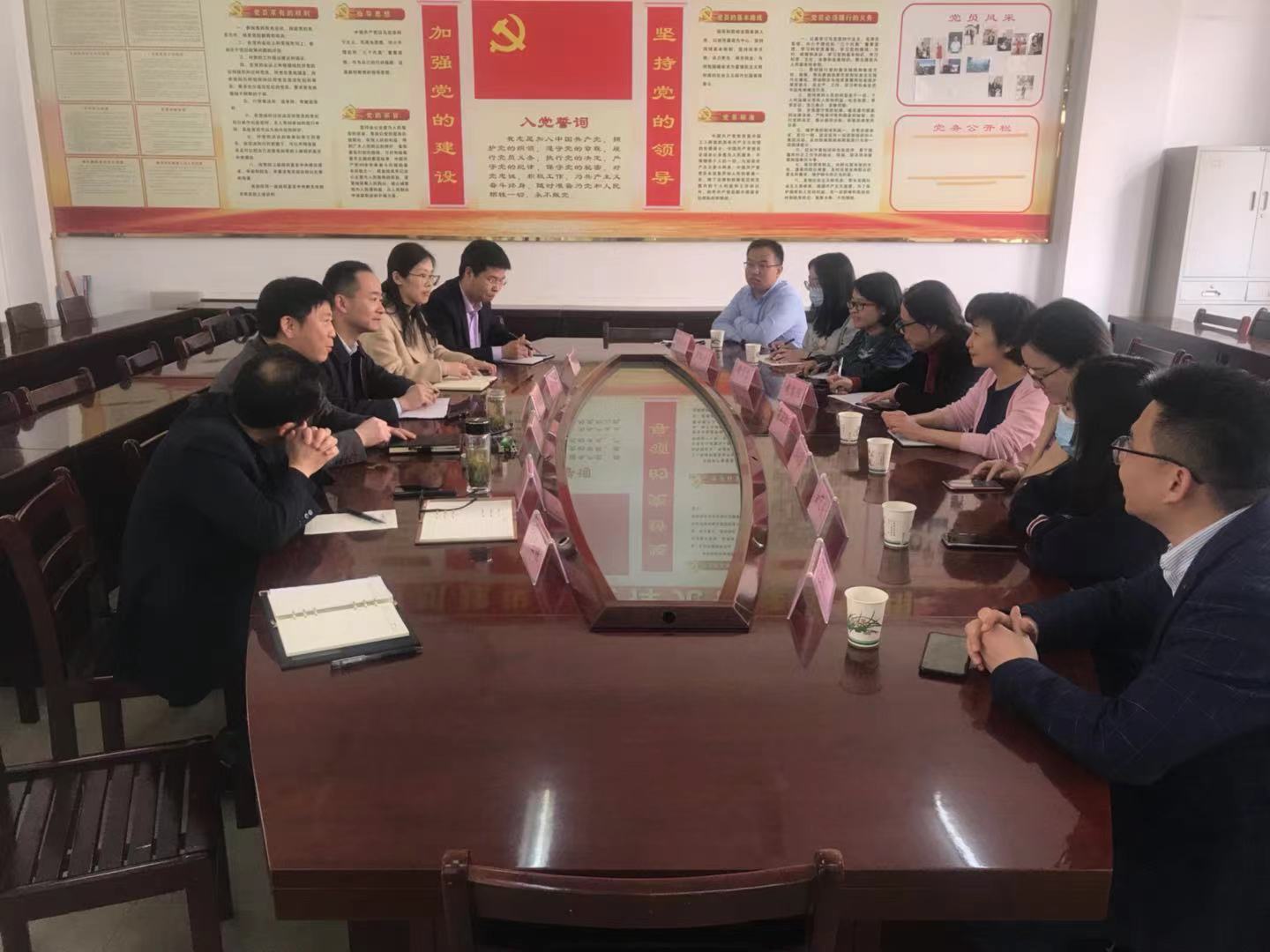 4月16日上午,广西工商职业技术公司tyc122cc太阳成集团经理粟卫红一行9人来公司考察交流。公司党总支书记镇咸辉、副经理胡志华、杨帆,教务科负责人高敏等同志参加了交流座谈会。