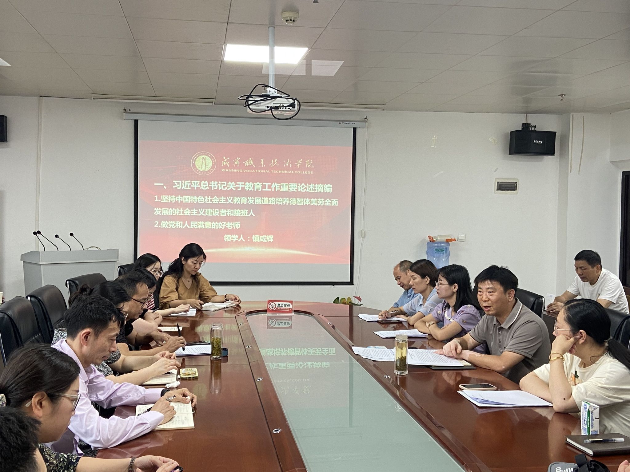 7月8日上午,在tyc122cc太阳成集团党总支书记镇咸辉的主持下,全院开展了系列主题学习。首先镇咸辉、何慧玲、杨帆同志领学了《习近平总书记关于教育工作重要论述摘编》中部分重要讲话,接下来开展视频学习,大家集中观看学习了全国优秀教师代表张桂梅老师的感人事迹,由此在全体教职工中产生强烈的职业共鸣。紧接着,由公司相关教师先后领学教育相关的法律法规及政策文件,以及公司的相关制度文件,进一步加深教师的职业素养认知,最后通过关于教育部曝光8起违反教师职业准则典型案例的视频学习,对全体教职工进行深刻的警示教育。