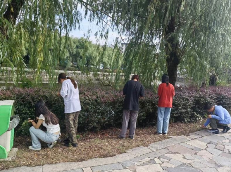 在"令人心动的爱情"主题活动中,"落叶情书"艺术疗愈环节成为最受欢迎的互动项目。通过角色扮演,同学们模拟恋爱中的常见场景,几位女同学将捡拾的花瓣树叶化作传递心意的创意材料,送给在篮球场运动的男同学们,在自然之美中探索爱情的表达方式。还有几位同学把枯叶撕碎重组为心形,笑称:"把失恋的难过重新拼成爱的勇气"。