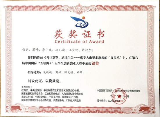 谢良蕴《蓝孔雀一二三产业》获省级创业大赛金奖
